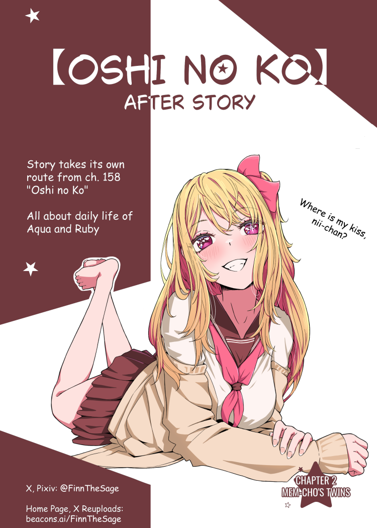 This work takes its own route from the original “Oshi no Ko” manga from chapter 158. It portrays a daily life of Aqua and Ruby.